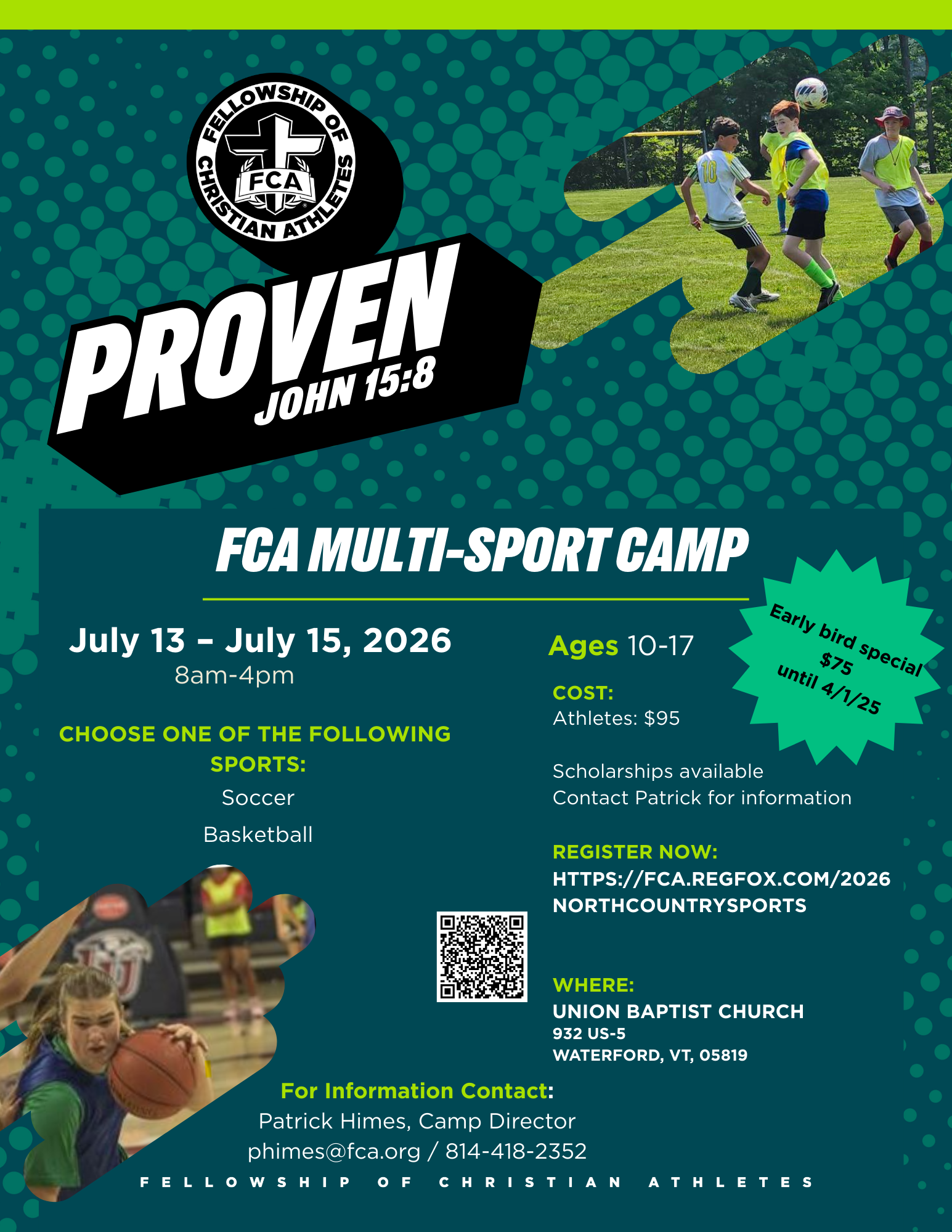 Join athletes from across the region for three days of soccer or basketball, and Christ‑centered community built to challenge you, inspire you, and fire up your passion for Jesus.